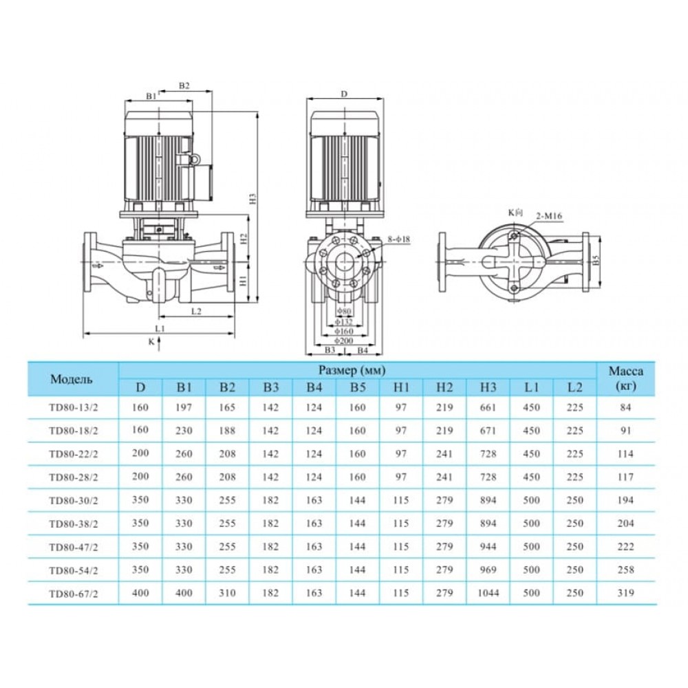 CNP TD 80-22/2 SWHCJ - одноступенчатый рядный циркуляционный центробежный вертикальный насос одностороннего всасывания с соосным размещением патрубков «in-line».